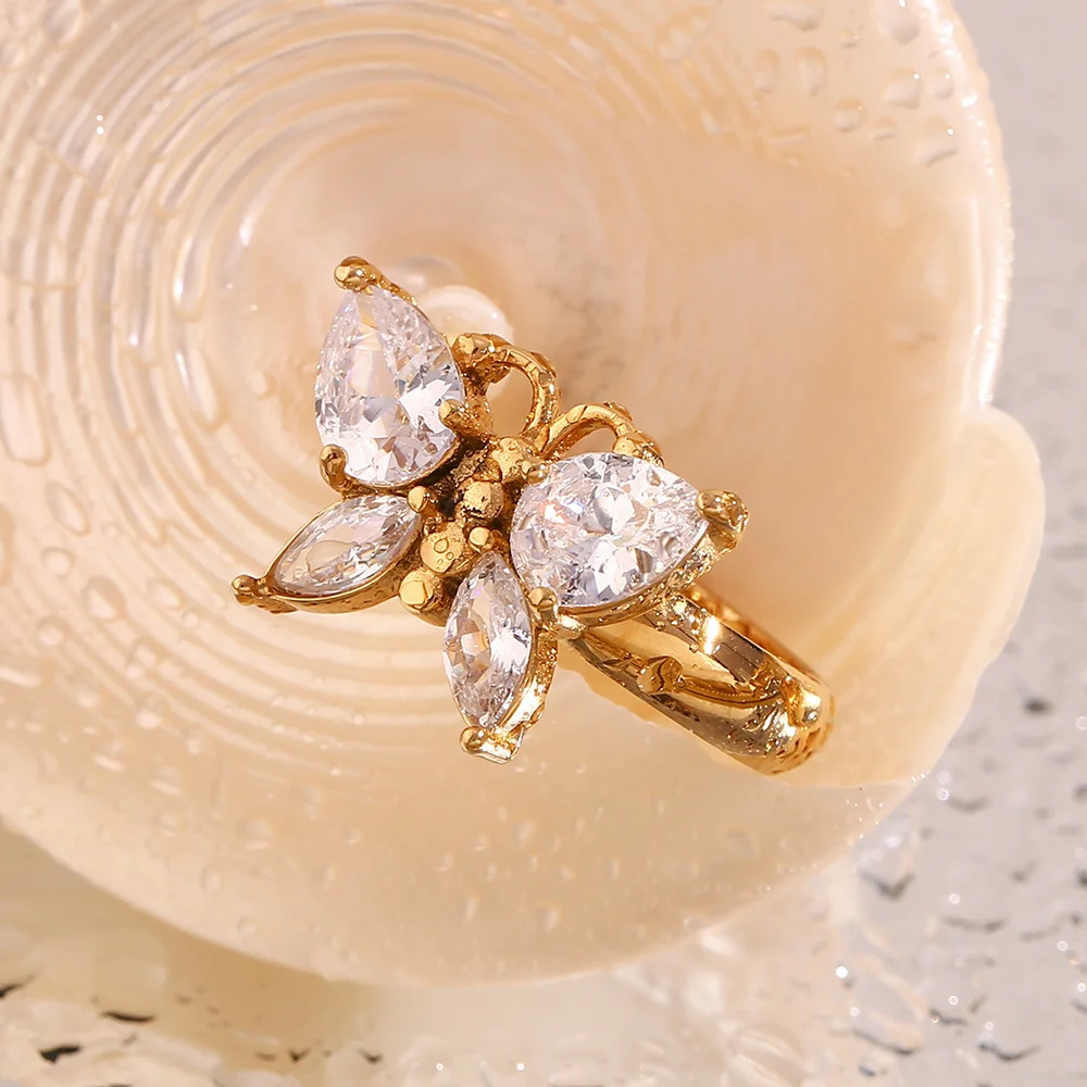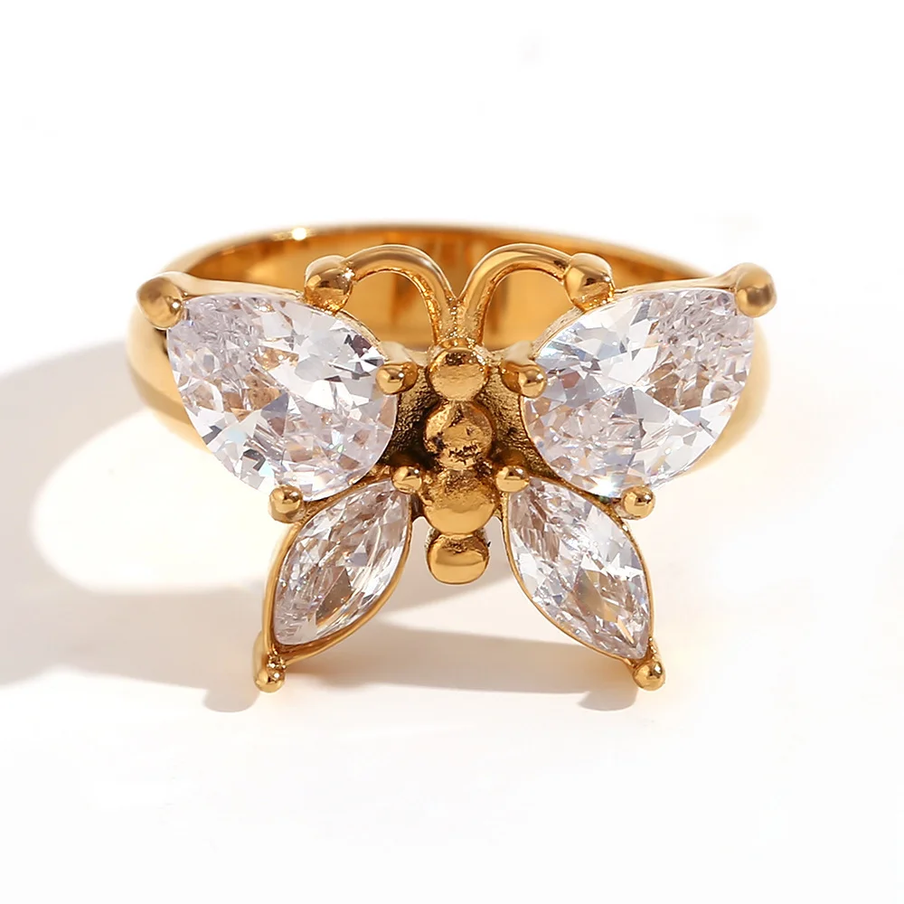 Fashion Zircon Butterfly Stainless Steel Plated 18K Gold Ring